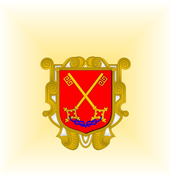 Ces armoiries nous rappellent que ce territoire recouvrant approximativement l’actuel département du Vaucluse, exclusion faite de l’ancienne Principauté d’Orange et de quelques ajouts mineurs, était jusqu’à la Révolution Française une possession du Saint-Siège. Ainsi, ce sont les clés de Saint Pierre, symbole du Pape (ici, uniquement en or, alors que dans les armoiries pontificales il est de tradition que l’une soit d’argent et l’autre d’or), que nous retrouvons sur l’écusson du Comtat Venaissin.