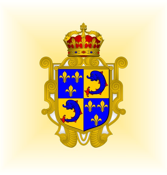 Autre conséquence de cet héritage, pour reprendre à l’identique les armoiries portées par les Dauphins de France, il est courant d’attribuer à la province du Dauphiné, concurremment aux seules armoiries au dauphin, des armoiries combinant par écartelure, les armes de France à trois fleurs de lys d’or en premier et quatrième quartiers et celles au dauphin en deuxième et troisième quartiers. Pour ce qui nous concerne, nous considérons qu’il y a des arguments valables pour l’usage de l’un ou l’autre choix au titre de la province delphinale, et pensons en conséquence que l’on peut, sans faire d’insulte à l’histoire, choisir sans crainte celles des deux que l’on préfère.