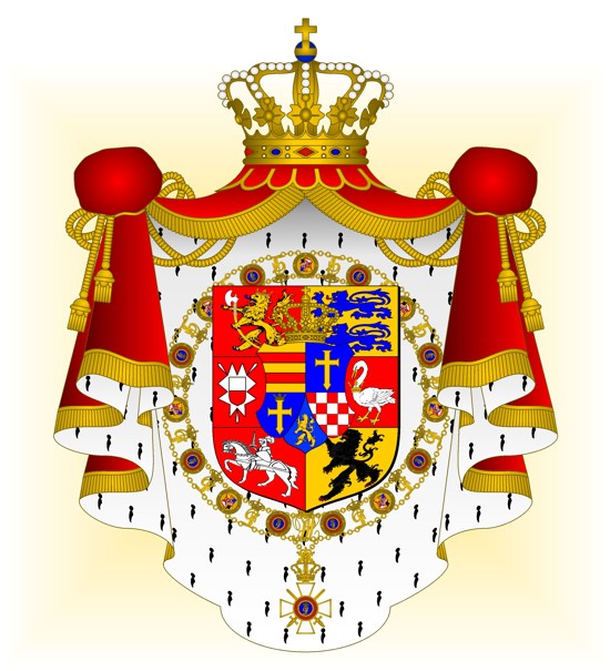 Voici le drapeau, les armoiries et la cocarde militaire de cette Principauté.