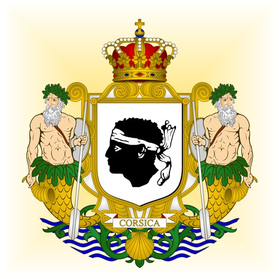 Le blasonnement des armoiries de Corse est : d'argent, à la tête de Maure de sable, tortillée d’argent.