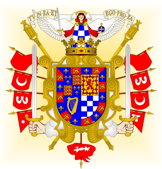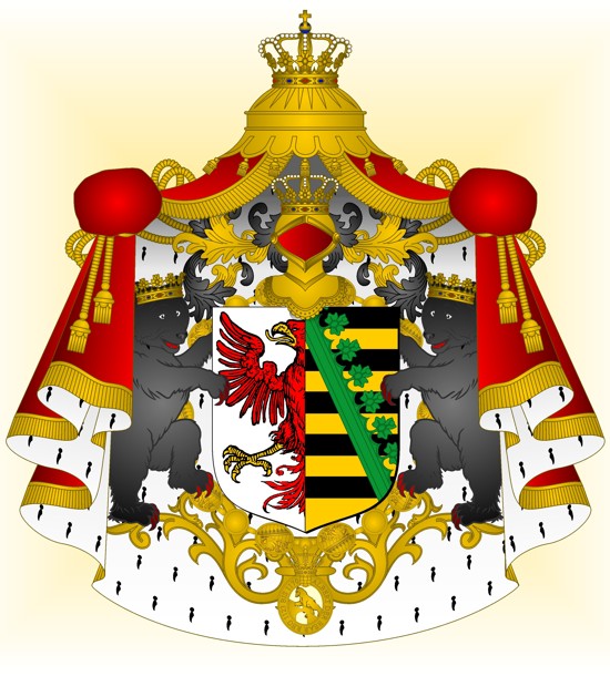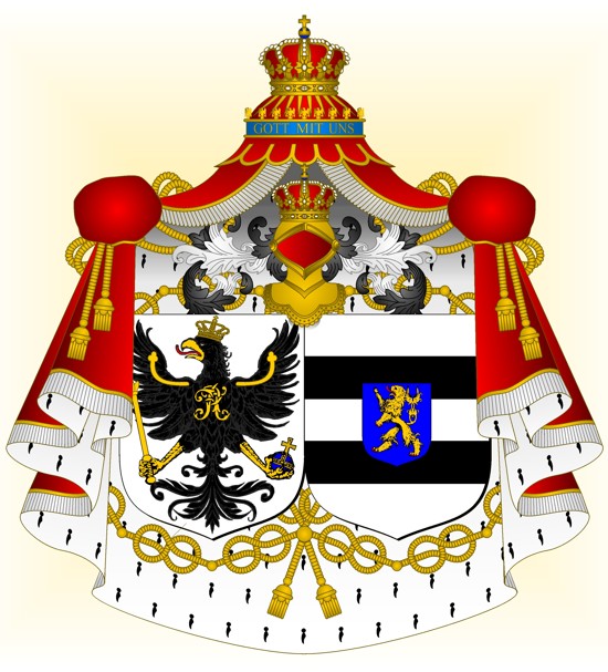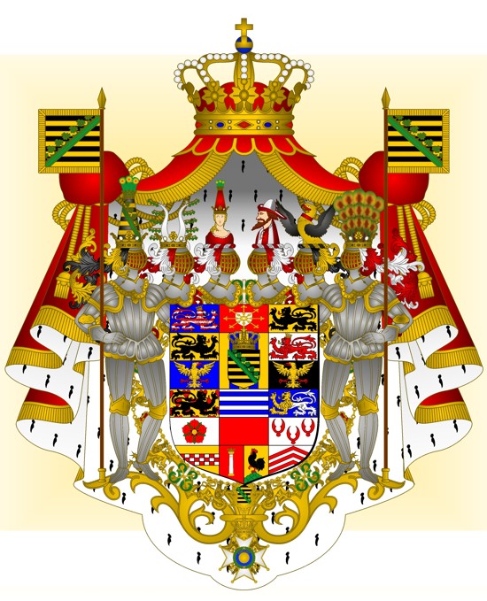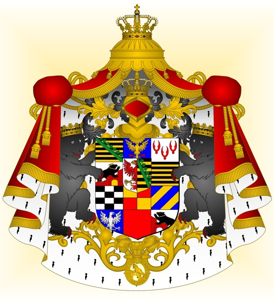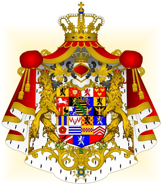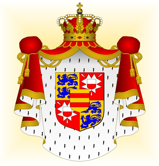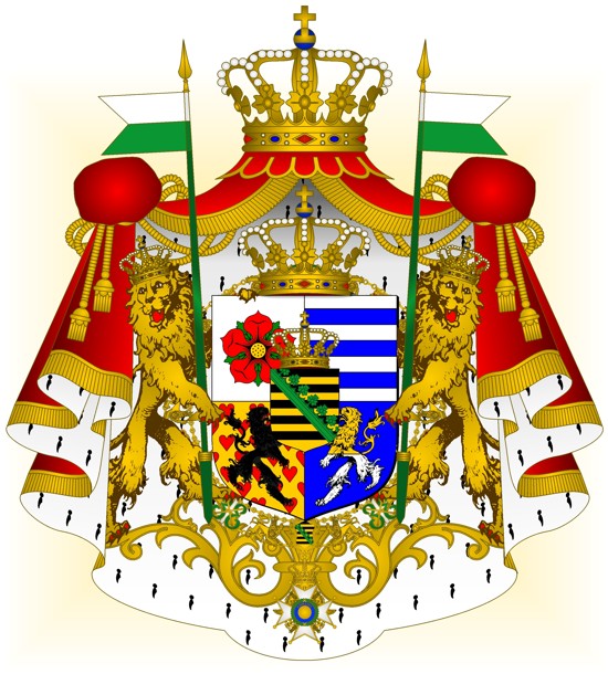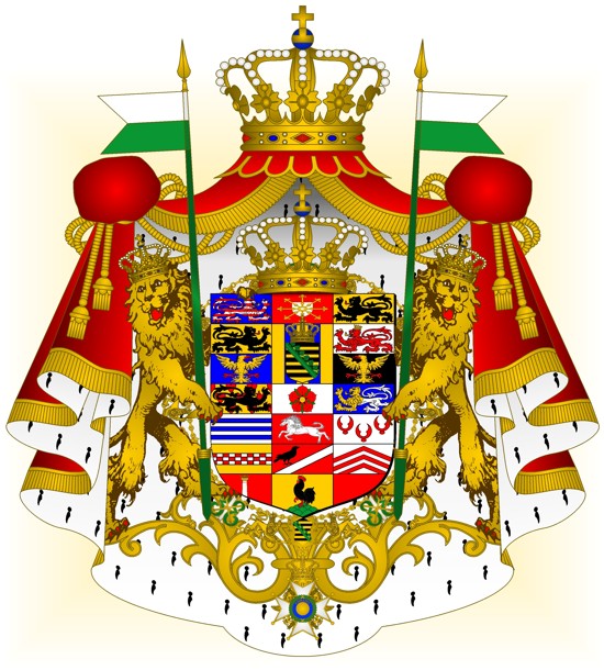 Voici le drapeau, les grandes armoiries, les moyennes armoiries et la cocarde militaire de ce Duché.