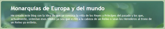 Edité par Ivan Makcimovich, le blog Monarquías de Europa y del mundo présente de nombreuses notices biographiques souvent complètes sur des souverains et souveraines des Empires, Royaumes et Principautés d'hier et d'aujourd'hui. Qui maîtrise la langue de Cervantes y trouvera une mine d'informations.