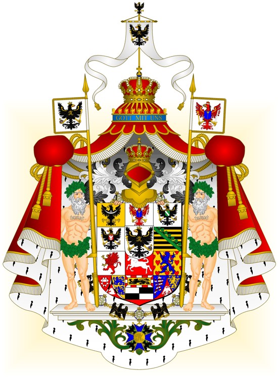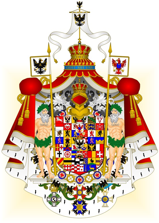 RépondreSupprimerS'agissant des Grandes et des Moyennes Armoiries, il s'agit bien de celle adopté après 1873 (après annexion du Royaume de Hanovre, de l'Electorat de Hesse (branche de Hesse-Cassel), des duchés de Schleswig et de Holstein, du duché de Saxe-Lauenbourg, du duché de Nassau, ainsi que de la Ville Libre de Francfort-sur le Main)