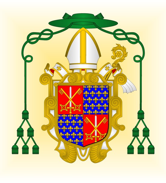 Blasonnement : Ecartelé : 1 et 4, de gueules, à deux clés d’or, passées en sautoir sur une épée haute d’argent, garnie d’or (Cluny) ; 2 et 3, d’azur, semé de fleurs de lys d’or (France).