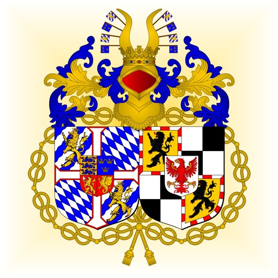 Ecartelé : 1 et 4, d'or, au lion de sable, armé et lampassé de gueules, à la bordure componée de gueules et d'argent (Burgraviat de Nuremberg); 3 et 3, contre-écartelé d'argent et de sable (Hohenzollern); sur-le-tout d'argent, à l'aigle de gueules, becquée, languée, membrée et liée d'or (Brandebourg).