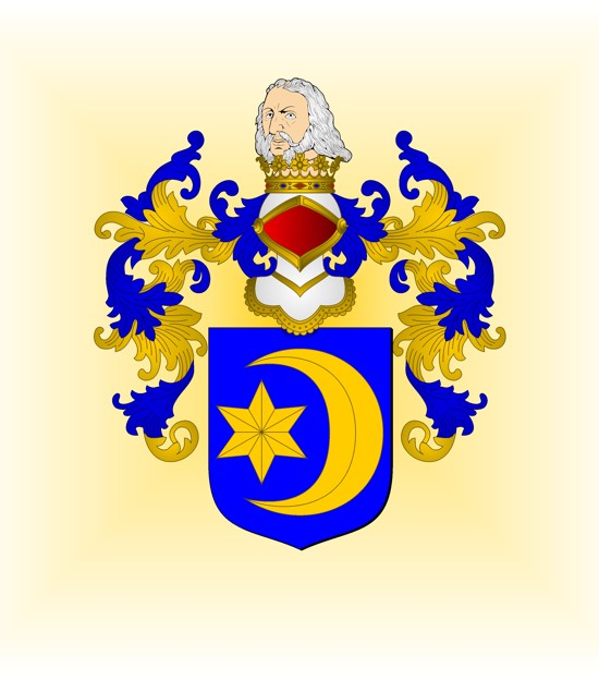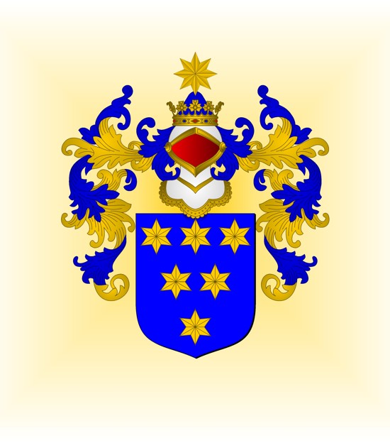 Cimier : Une étoile (8) d'or, posée sur un monticule d'azur, issant d'une couronne.