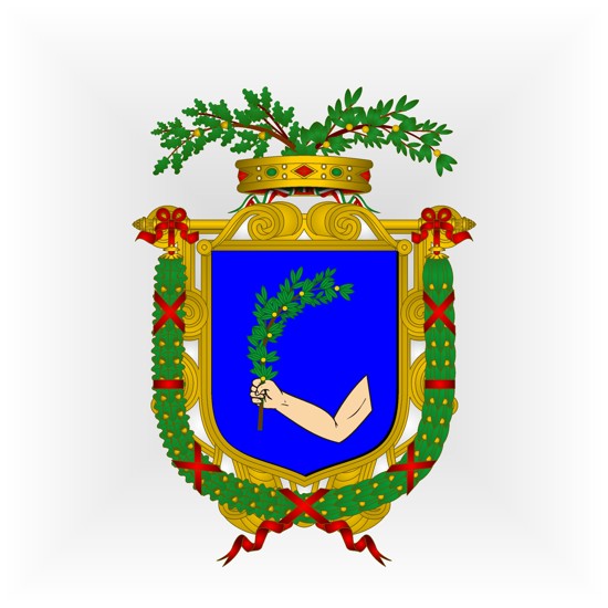Blasonnement : D’azur, au dextrochère tenant un rameau d’olivier au naturel.