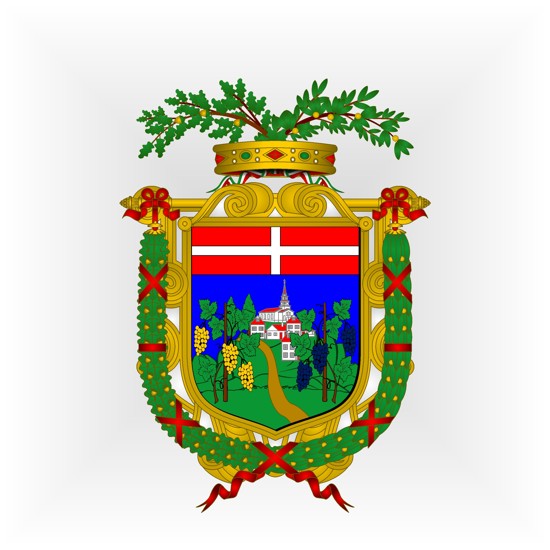 au chef de gueules, chargé d’une croix d’argent.