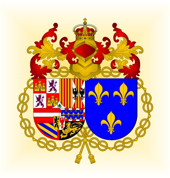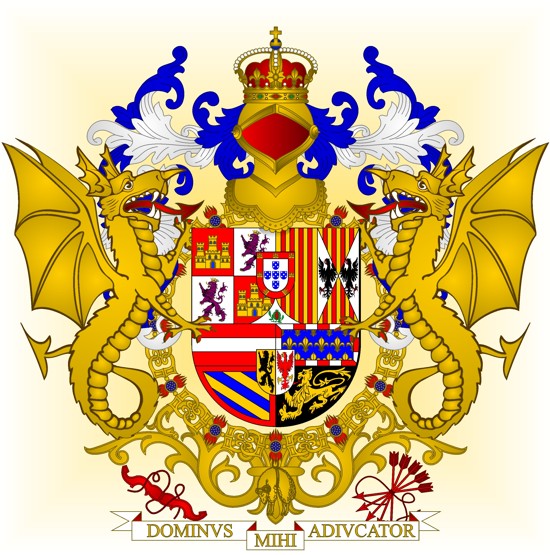 Duc titulaire Philippe V de Bourgogne (1555), Duc de Lothier, Duc de Brabant, Duc de Gueldre, Duc de Limbourg, Duc de Luxembourg, Comte de Flandre, Comte d'Artois, Comte palatin de Bourgogne, Comte de Hainaut Comte de Hollande, Comte de Zélande, Comte de Namur, Comte de Zutphen, Marquis du Saint-Empire, Seigneur de Malines, de Frise, de Salin