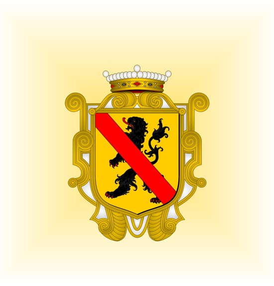 Le blasonnement des armoiries du Hainaut est : écartelé : 1 et 4, d'or, au lion de sable, armé et lampassé de gueules (Flandre); 2 et 3, d'or, au lion de gueules, armé et lampassé d'azur (Hollande).