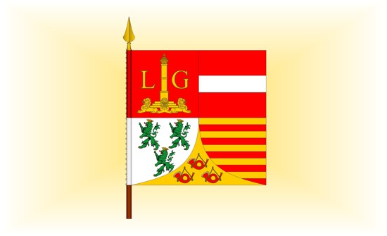 Le blasonnement des armoiries de la Province de Liège (Provinz Lüttich) est : écartelé : 1, de gueules au perron d'or haussé, supporté par trois lions sur trois degrés, monté d'une pomme de pin, sommé d'une croix pattée, le tout d'or, accosté d'un L et G majuscules de même (Ville de Liège) ; 2, de gueules, à la fasce d'argent (Bouillon) ; 3, d'argent, à trois lions de sinople, armés et lampassés de gueules, et couronnés d'or (Franchimont) ; 4, burelé (10) d'or et de gueules (Looz) ; enté en pointe d'or, à trois cors de chasse mal-ordonnés (*) de gueules, virolés et enguichés d'argent (Hornes).