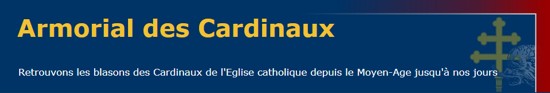 Depuis quelques jours a été lancé le nouveau blog Armorial des Cardinaux. Comme son nom le laisse supposer, il a pour vocation de présenter les armoiries des Cardinaux de l'Eglise catholique depuis le début des temps héraldiques jusqu'à nos jours. Pour l'instant, le nombre de messages publiés est encore modeste, mais à l'instar de mes autres blogs, je compte l'augmenter quotidiennement.