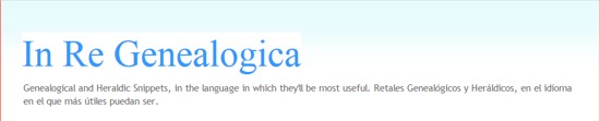 Créé par Matthew Hovious, le blog In Re Genealogica est plein d'anecdotes et de curiosités généalogiques et héraldiques. A visiter régulièrement pour tous les amateurs.