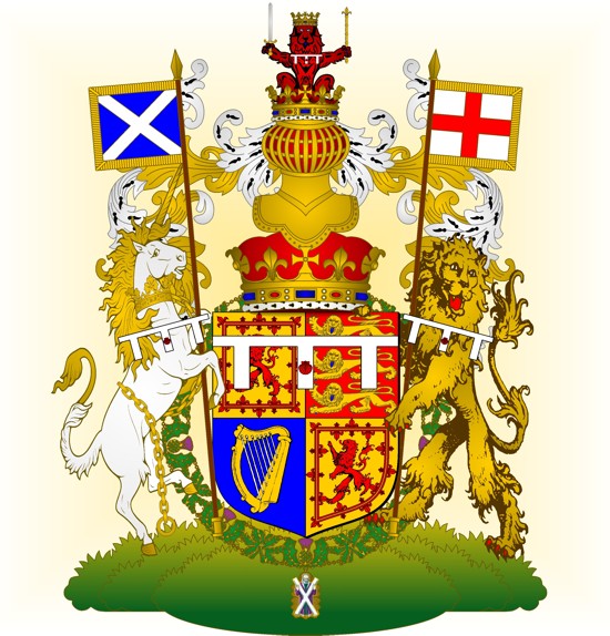 Voici une représentation de ses armoiries avec le collier de cet ordre, qui en Ecosse est par ordre de préséance le premier des ordres de chevalerie. On pourra remarquer que ces armoiries ne sont pas celles de son titre anglais de Duc de Cambridge, mais celles de son titre écossais de Comte de Strathearn.