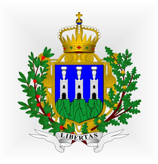 Saint-Marin (San Marino), capitale de la Sérénissime République de Saint-Marin (Serenissima Repubblica di San Marino), utilise les armoiries suivantes :