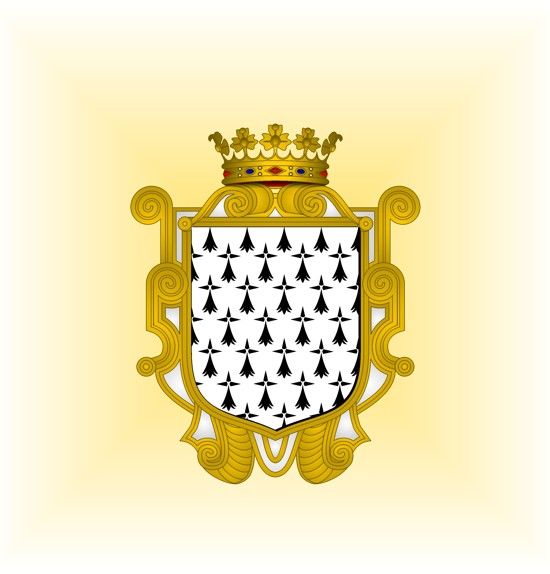 L’origine de ces armoiries connaît une version historique et une version légendaire. Pour la version historique, elles trouvent leur origine dans les armes du premier souverain capétien de Bretagne, Pierre Mauclerc de Dreux (+ 1250) (*). En tant que cadet des Comtes de Dreux, il portait, une brisure sur ses armoiries familiales (**). En l’occurrence, il ajoutait un franc-quartier d’hermine. Les armes au franc-quartier sont conservées à l’identique jusqu’au Duc Jean III, qui vers 1316, sans doute parce qu’il est alors en conflit avec une autre branche de sa famille, modifie les armoiries ducales pour ne plus porter que le franc-quartier, c’est-à-dire, pour ne porter dès lors que des armes d’hermine plain.