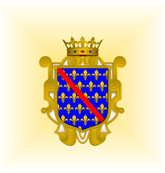 Ces armoiries sont celles de la troisième et dernière maison de Bourbon, évidemment la plus connue car issue de Robert de Clermont, fils de Saint Louis, et qui à l’extinction de la maison de Valois accède, en la personne d’Henri IV, à la Couronne de France. Leur brisure distinctive, la cotice de gueules, est demeurée emblématique de cette branche des Capétiens, et survivra sous la forme réduite d’un "bâton péri en bande" jusqu’en 1830, dans les armes des Princes de Condé.